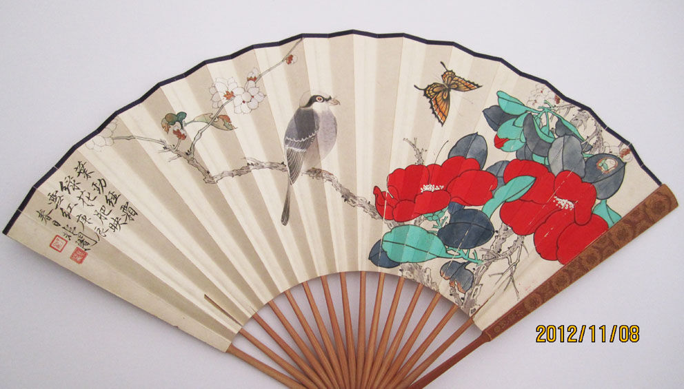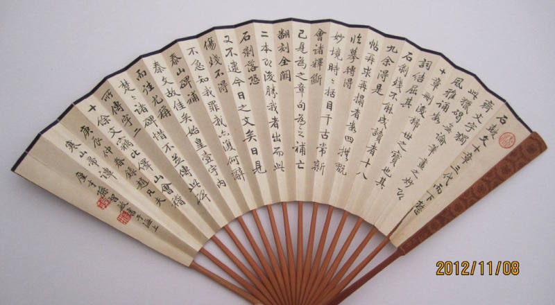 扇骨:双面刻蝙蝠寿字竹扇骨。“竹庐刻”“五福同寿”款。背面孙智敏书于海上。
