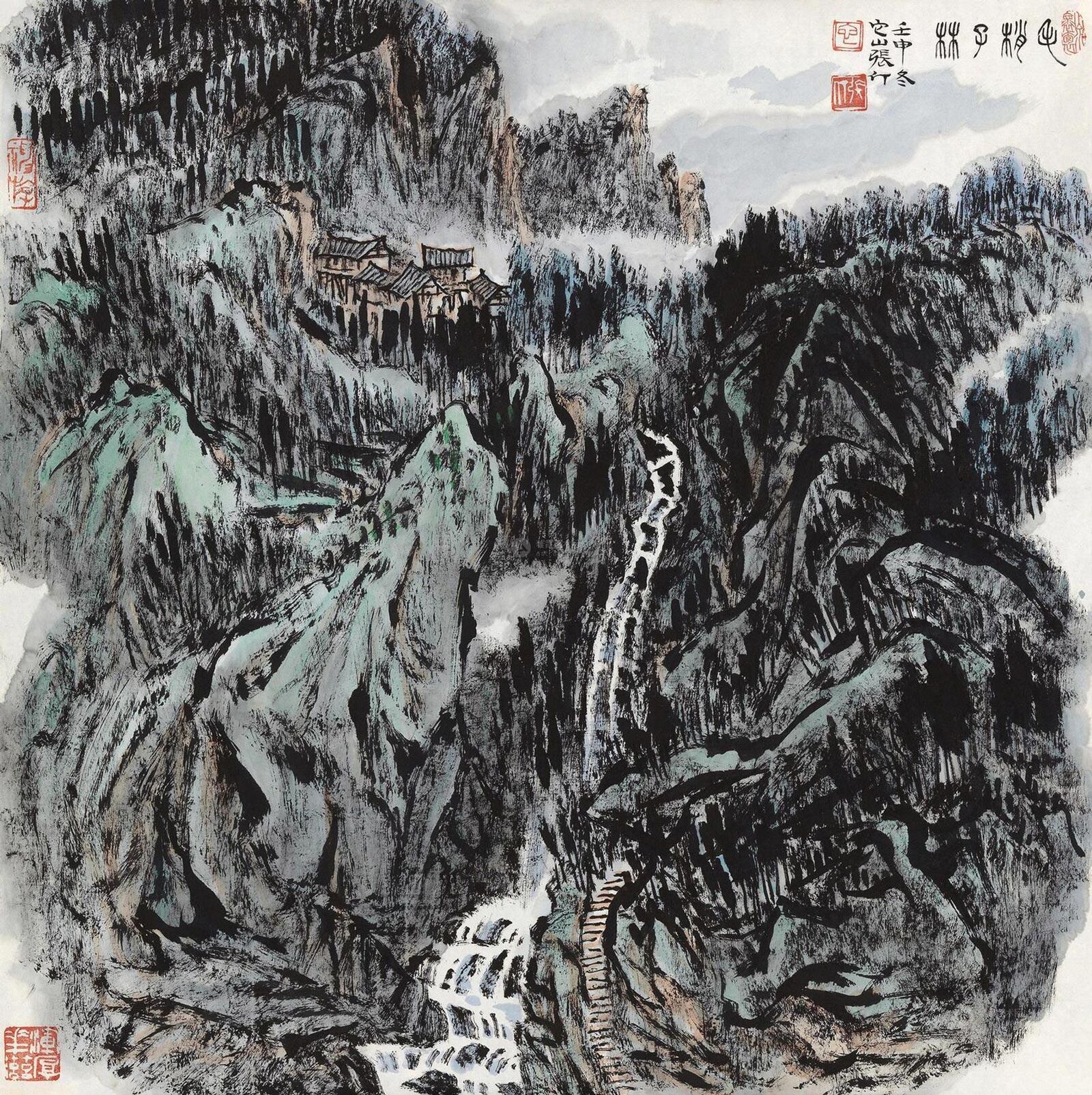 著录:《张仃画室•焦墨设色山水》第67页,河北教育出版社,2007年