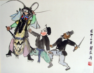 镜心,品相完好。出版:《林风眠、关良纸上作品集》第52至53页,(台北)大未来画廊有限公司,1998年《关良百年纪念展》第85页,(台北)大未来画廊有限公司,2000年4月